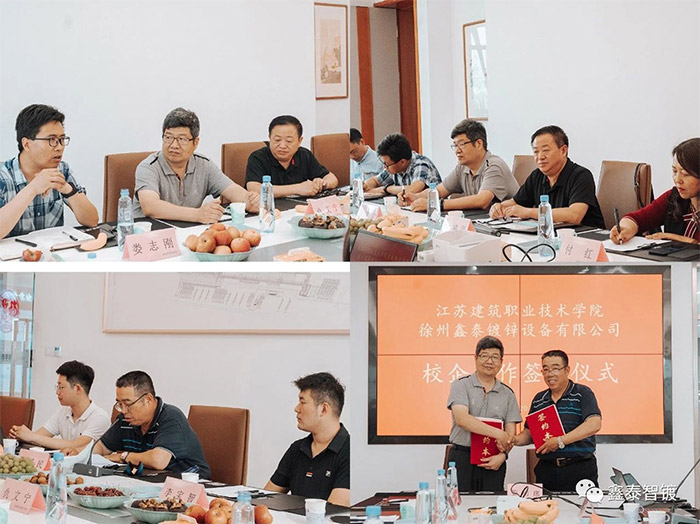 26 мая компания Xuzhou Xintai оцинкованное оборудование Co., Ltd. и Цзянсуский инженерный профессионально - технический институт в штаб - квартире Xintai провели « церемонию подписания стратегического сотрудничества по подготовке кадров для совместной индустрии горячего цинкования».
